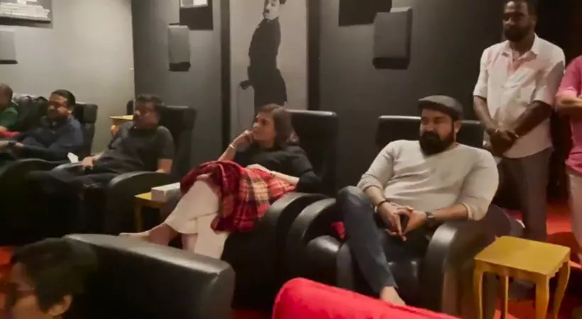 വീട്ടിലെ തിയേറ്ററില് കുടുംബത്തോടൊപ്പം ദൃശ്യം 2 കാണുന്ന മോഹന്ലാല്; വീഡിയോ