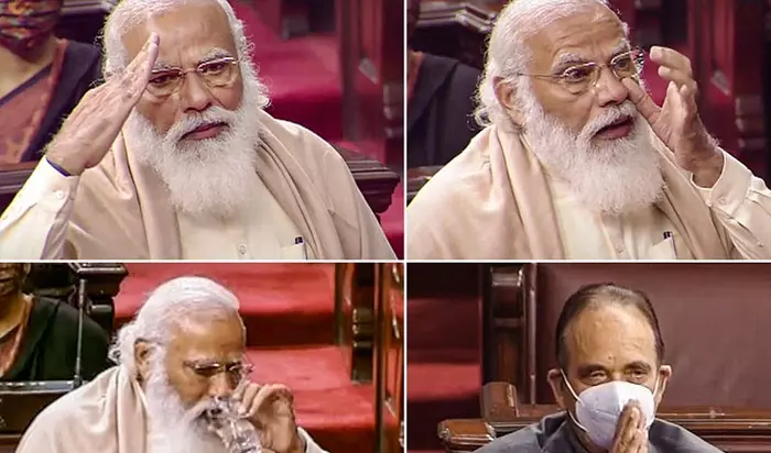 'എനിക്ക് ഗുലാം നബി ആസാദിനെ വർഷങ്ങളായി അറിയാം. മുഖ്യമന്ത്രി (ഗുജറാത്ത്) ആകുന്നതിന് മുമ്പു തന്നെ എന്നോട് അദ്ദേഹം ആശയവിനിമയം നടത്തിയിരുന്നു. അന്ന് ആസാദ് രാഷ്ട്രീയത്തിൽ സജീവമായിരുന്നു. കശ്മീരിൽ ഭീകരാക്രമണം ഉണ്ടായ വേളയിൽ ഗുജറാത്തികൾ അവിടെ കുടുങ്ങിയത് എനിക്ക് മറക്കാനാകില്ല. ആ വേളയിൽ ആസാദും പ്രണബ് മുഖർജിയും നടത്തിയ ശ്രമങ്ങൾ വിസ്മരിക്കാൻ കഴിയില്ല. ആ ദിവസം ഗുലാം നബി ജി എന്നെ വിളിച്ചു' - ഇത് പറയുന്നതിനിടെയാണ് മോദി ആദ്യം വിതുമ്പിയത്. വെള്ളം കുടിച്ച് ഇടവേളയെടുത്ത ശേഷമാണ് മോദി സംസാരം തുടർന്നത്.
