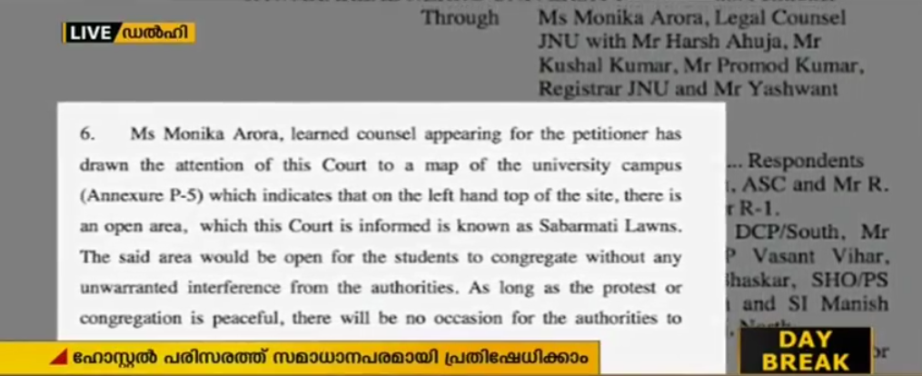 ജെഎന്യുവിലെ അഡ്മിനിസ്ട്രേറ്റീവ് ബ്ലോക്കിന് മുന്നിലെ പ്രതിഷേധത്തിന് ഡല്ഹി ഹൈക്കോടതിയുടെ വിലക്ക്. മൂന്ന് ദിവസത്തേക്കാണ് വിലക്ക് ഏര്പ്പെടുത്തിയത്. ഹോസ്റ്റല് പരിസരത്ത് വിദ്യാര്ഥികള്ക്ക് സമാധാനപരമായി