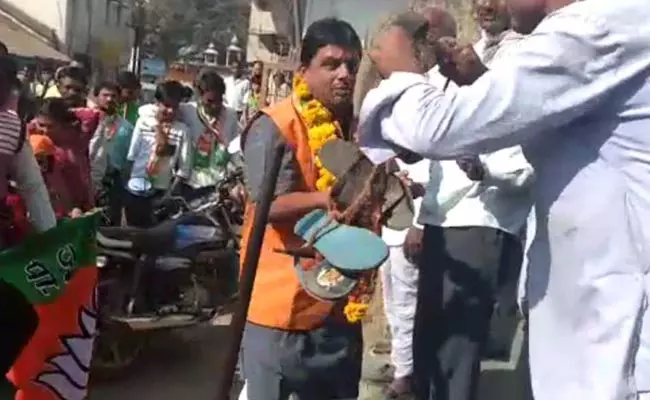 വോട്ട് തേടിയെത്തിയ ബിജെപി സ്ഥാനാര്ഥിക്ക് ഷൂ മാലയിട്ട് സ്വീകരണം