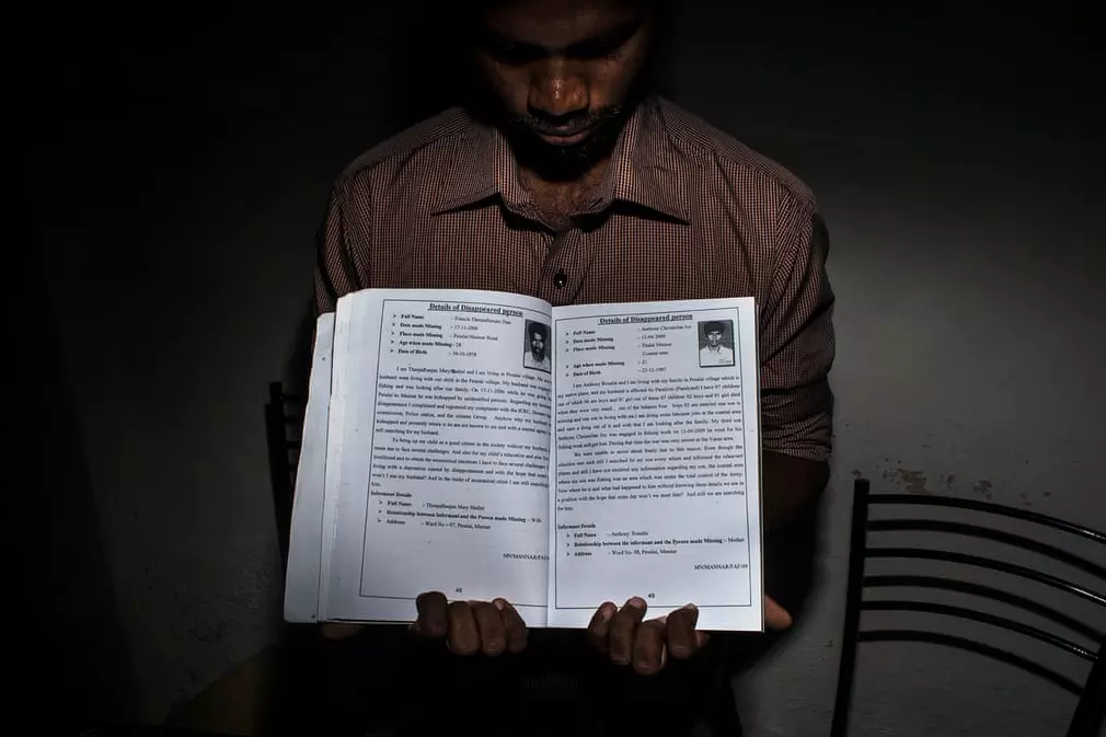 മാന്നാര് ജില്ലയില് നിന്ന് കാണാതായവരുടെ ചിത്രങ്ങളും ഫയലുകളും. 65,000 പേരെ കാണാതായതായി വിദേശകാര്യ മന്ത്രാലയം സമ്മതിക്കുന്നുണ്ട്. എന്നാല് അനൗദ്യോഗിക കണക്കുകള് പ്രകാരം ഒരു ലക്ഷത്തോളം വരുന്നവരെ പട്ടാളവും അര്ദ്ധസൈനിക വിഭാഗങ്ങളും തട്ടിക്കൊണ്ടുപോവുകയും അറസ്റ്റുചെയ്യുകയും ചെയ്തിട്ടുണ്ട്.