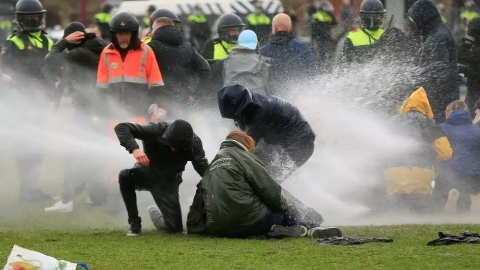 കോവിഡ് പ്രതിരോധത്തിന്റെ ഭാഗമായി ഏർപ്പെടുത്തിയ നിയന്ത്രണങ്ങൾക്കെതിരെ നെതർലൻഡ്സിൽ പ്രതിഷേധം ശക്തമാകുന്നു. പ്രതിഷേധം അക്രമാസക്തമായതിനെ തുടർന്ന് പോലീസ് ജലപീരങ്കിയും കണ്ണീർ വാതകവും ഉപയോഗിച്ചു.