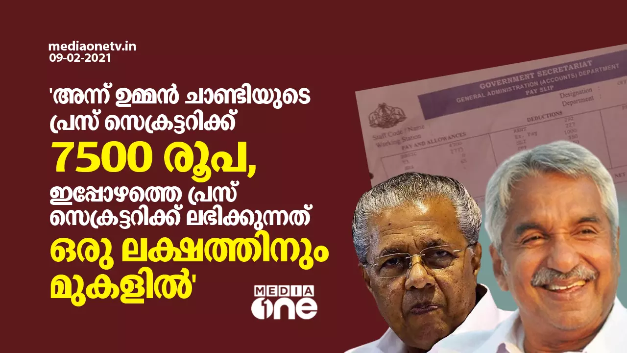 'അന്ന് ഉമ്മന് ചാണ്ടിയുടെ പ്രസ് സെക്രട്ടറിക്ക് ലഭിച്ചിരുന്നത് 7500 രൂപ, ഇപ്പോഴത്തെ പ്രസ് സെക്രട്ടറിക്ക് ലഭിക്കുന്നത് ഒരു ലക്ഷത്തിനും മുകളില്'