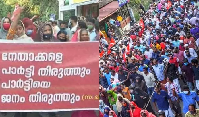 പോസ്റ്ററിൽ നിന്ന് തുടങ്ങിയ പ്രതിഷേധം തെരുവിൽ അണപൊട്ടുന്ന കാഴ്ചയാണ് പിന്നീടുണ്ടായത്. അഞ്ഞൂറോളം പാർട്ടി പ്രവർത്തകരാണ് കഴിഞ്ഞ ദിവസം നടന്ന പ്രതിഷേധത്തിൽ പങ്കെടുത്തത്. നേതാക്കളെ പാർട്ടി തിരുത്തും, പാർട്ടിയെ ജനം തിരുത്തും എന്ന ബാനറാണ് ഇവർ ഉയർത്തിപ്പിടിച്ചിരുന്നത്.
