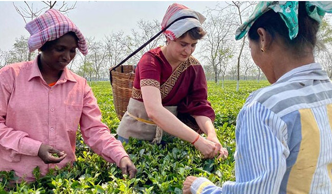 അസമില് തോട്ടം തൊഴിലാളികള്ക്കൊപ്പം തേയില നുള്ളി പ്രിയങ്ക ഗാന്ധി