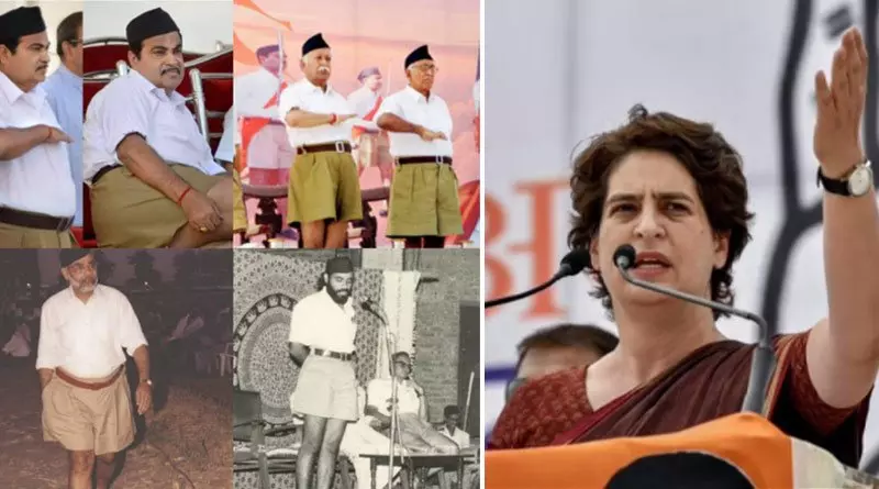 നരേന്ദ്ര മോദിയും കേന്ദ്രമന്ത്രി നിതിൻ ഗഡ്കരിയും ആർ.എസ്.എസ് തലവൻ മോഹൻ ഭാഗ്വതും കാവി കളസത്തിലുള്ള ചിത്രങ്ങളാണ് പ്രിയങ്ക ട്വിറ്ററില് പോസ്റ്റ് ചെയ്തത്. 'ദൈവമേ ഇവരുടെയെല്ലാം കാൽമുട്ടുകൾ വെളിവാകുന്നല്ലോ' എന്നും പ്രിയങ്ക കുറിച്ചു.