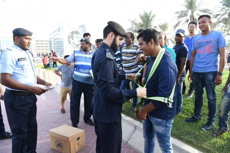 വിദേശി തൊഴിലാളികള്ക്ക് റോഡ് മുറിച്ചുകടക്കുമ്പോള് ധരിക്കേണ്ട പ്രത്യേക ജാക്കറ്റ് വിതരണം ചെയ്യുകയും ചെയ്തു