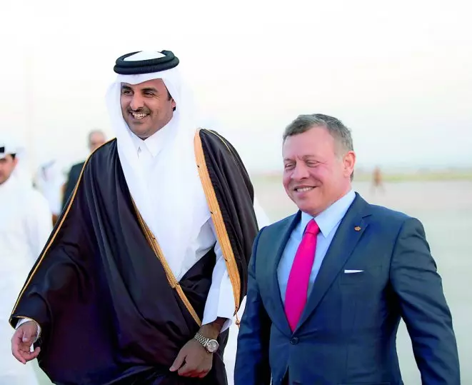 പര്യടനത്തിന്റെ ആദ്യ പടിയായി ജോര്ദ്ദാന് തലസ്ഥാനമായ അമ്മാനില് വിമാനമിറങ്ങിയ അമീറിന് ഊഷ്ടമളമായ സ്വീകരണമാണ് നല്കിയത്