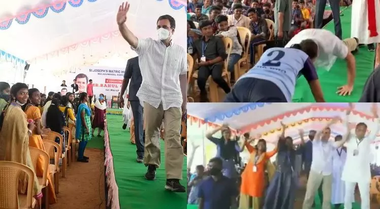 ഒറ്റക്കൈ കൊണ്ട് പുഷ് അപ്പ്, നൃത്തം.. വിദ്യാര്ഥികള്ക്കൊപ്പം രാഹുല് ഗാന്ധി