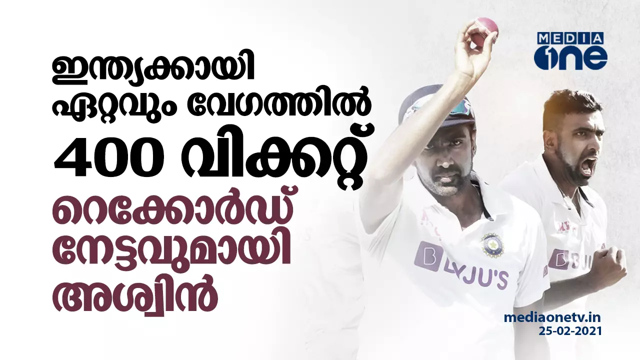 ടെസ്റ്റ് ക്രിക്കറ്റില് നാനൂറ് വിക്കറ്റ്; റെക്കോര്ഡ് നേട്ടവുമായി അശ്വിന്