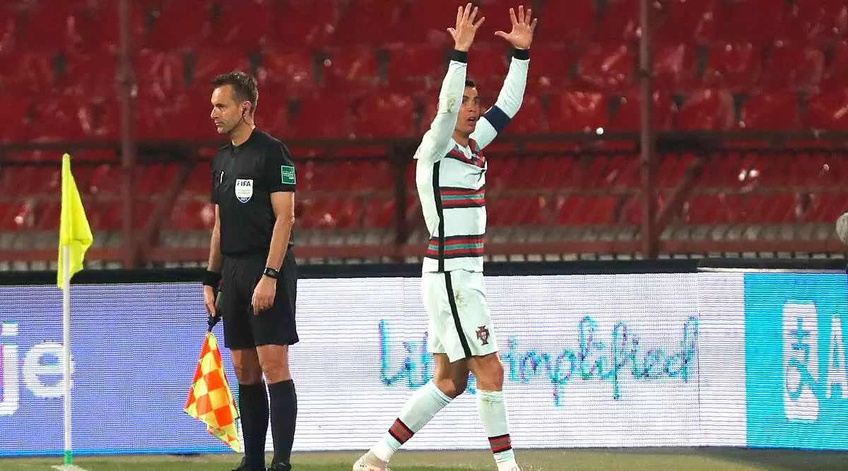 ലോകകപ്പ് യോഗ്യതാ മത്സരത്തിൽ പോർച്ചുഗലിനായി അവസാന നിമിഷം നേടിയ വിജയഗോൾ റഫറി അനുവദിക്കാത്തതിനെതിരെ പ്രതിഷേധിച്ച് പോർച്ചുഗൽ നായകൻ ക്രിസ്റ്റ്യാനോ റൊണാൾഡോ. തന്റെ ഷോട്ട് ഗോൾലൈൻ കടന്നിട്ടും അനുവദിക്കാതിരുന്ന റഫറിയുടെ തീരുമാനത്തിൽ പരസ്യമായി പ്രതിഷേധിച്ച റൊണാൾഡോ, ക്യാപ്റ്റന്റെ ആംബാൻഡ് ഊരിയെറിഞ്ഞ് ഫൈനൽ വിസിൽ മുഴങ്ങും മുൻപേ ഗ്രൗണ്ട് വിട്ടു. ഗോളിനായി വാദിച്ച് പ്രതിഷേധിച്ച റൊണാൾഡോക്ക് റഫറി മഞ്ഞക്കാർഡും നൽകി. ഈ ഗോൾ അനുവദിക്കാതിരുന്നതോടെ പോർച്ചുഗലും സെർബിയയും 2–2 സമനിലയിൽ പിരിഞ്ഞു.