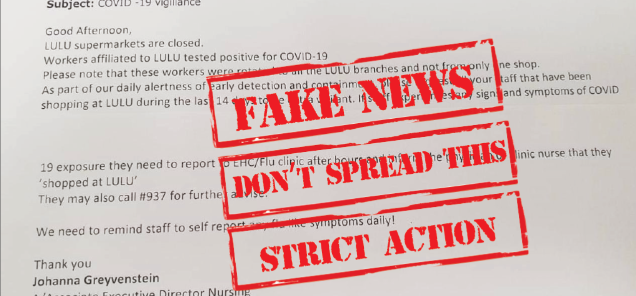 ഇതിന് പിന്നാലെയാണ് ഒരു മെയില് കോപ്പിയോടൊപ്പം ജീവനക്കാര്ക്ക് കോവിഡ് ബാധിച്ചതിനാല് എല്ലാ ബ്രാഞ്ചുകളും അടക്കുന്നു എന്ന തരത്തിലുള്ള വ്യാജ പ്രചാരണം. സൌദിയില് ആദ്യത്തെ കോവിഡ് കേസ് റിപ്പോര്ട്ട് ചെയ്തതു മുതല് ഏറ്റവും തുടക്കത്തില് തന്നെ ആരോഗ്യ മന്ത്രാലയത്തിന്റെ ചട്ടപ്രകാരം കോവിഡ് പ്രതിരോധ നടപടി സ്വീകരിച്ചാണ് ലുലു ഗ്രൂപ്പിന്റെ എല്ലാ മാളുകളും പ്രവര്ത്തിക്കുന്നത്. ജീവനക്കാര്ക്കും ഹൈപ്പര്മാര്ക്കറ്റുകളിലും എത്തുന്നവര്ക്കും ആരോഗ്യ മന്ത്രാലയത്തിന്റെ ചട്ടമനുസരിച്ചുള്ള സംവിധാനങ്ങള് ലുലുവില് നല്കുന്നുണ്ട്.