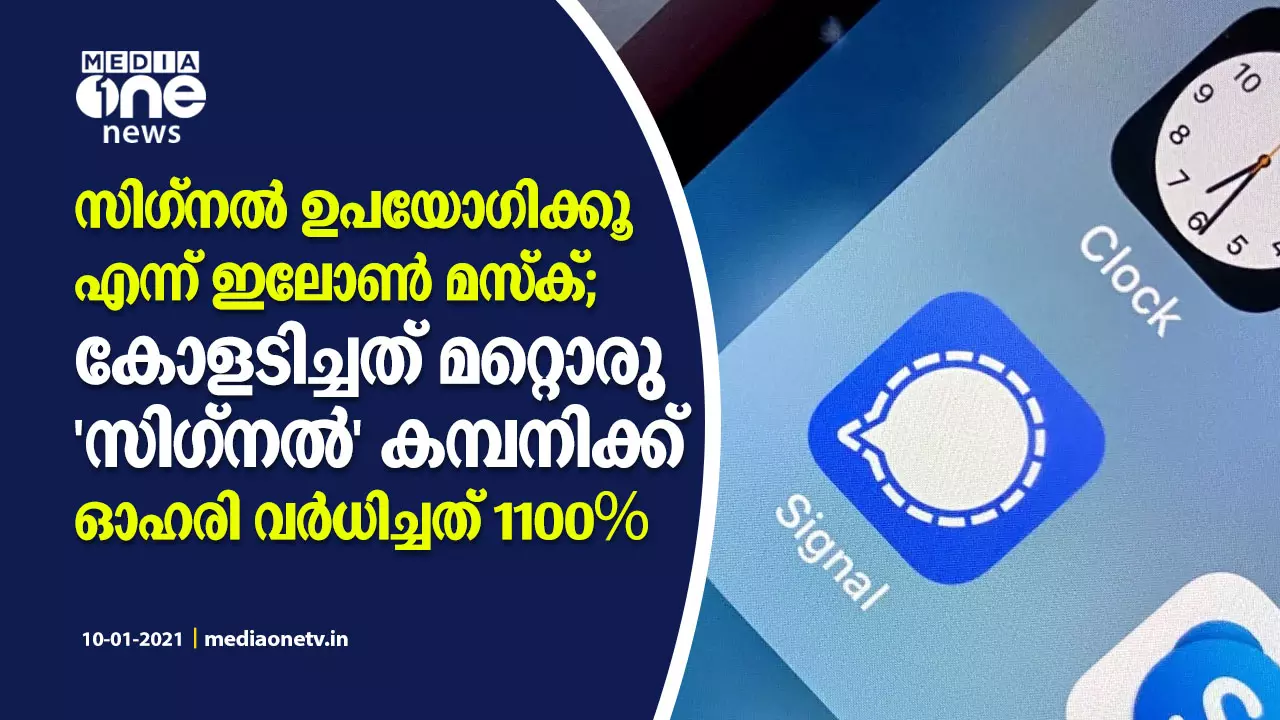 എന്നാല് ആ വാക്കുകള് ഏറെ ഉപകാരപ്പെട്ടത് സിഗ്നല് എന്ന മറ്റൊരു കമ്പനിക്കാണ്. സിഗ്നല് മെസേജിങ് ആപ്പുമായി ഒരു ബന്ധവുമില്ലാത്ത സിഗ്നല് അഡ്വാന്സ് എന്ന ടെക്സാസ് ആസ്ഥാനമായ കമ്പനിക്ക്. കമ്പനിയുടെ ഓഹരിയില് കഴിഞ്ഞ ദിവസങ്ങളിലായി 1100 ശതമാനം വര്ധനയാണ് രേഖപ്പെടുത്തിയത്. 60 സെന്റ് മാത്രമായിരുന്ന കമ്പനി ഓഹരി വെള്ളിയാഴ്ചയോടെ 8.30 ഡോളര് ആയാണ് കുതിച്ചു കയറിയത്.