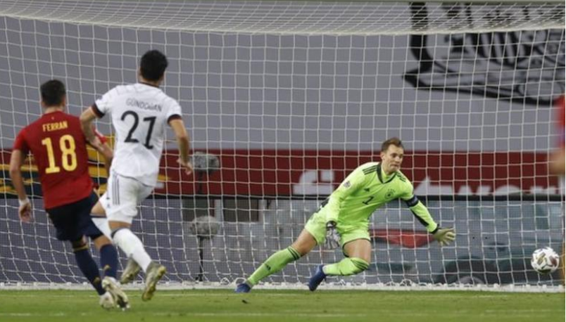 നാഷന്സ് ലീഗില് ജര്മനിക്ക് നാണംകെട്ട തോല്വി. സ്പെയ്ന് മറുപടിയില്ലാത്ത ആറ് ഗോളുകള്ക്കാണ് ജര്മനിയെ പരാജയപ്പെടുത്തിയത്. ഫെറാന് ടൊറെസ് സ്പെയ്നിനായി കരിയറിലെ ആദ്യ ഹാട്രിക് നേടി.