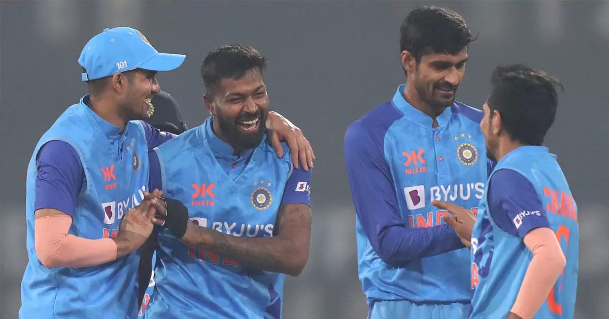മാർക് ചപ്മാനെ കുൽദീപ് യാദവ് റണ്ണൗട്ടാക്കി. മൈക്കൽ ബ്രോസ്വെല്ലിനെ ഹർദിക് പാണ്ഡ്യ അർഷദീപിന്റെ കൈകളിലെത്തിച്ചപ്പോൾ ഇഷ്സോഥിയുടെ മടക്കം നേരെ തിരിച്ചുള്ള ക്യാച്ചിലായിരുന്നു. സോഥിയെ അർഷദീപിന്റെ പന്തിൽ ഹർദിക് പിടികൂടി. ലോക്കി ഫെർഗ്യൂസനെയും അർഷദീപാണ് വീഴ്ത്തിയത്. സുന്ദറിന്റെ കയ്യിലാണ് താരത്തിന്റെ ഷോട്ട് കുടുങ്ങിയത്. ജേക്കബ് ഡഫിയും നായകൻ സാൻറനറും പുറത്താകാതെ പിടിച്ചുനിന്നു.