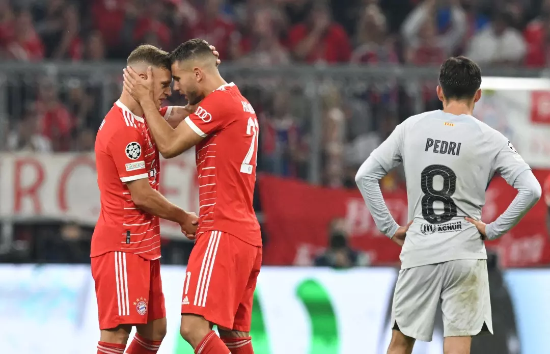 ഷാവി ഹെർണാണ്ടസിന്റെ പരിശീലനത്തിനു കീഴിൽ പുതുജീവൻ വീണ്ടെടുത്ത ബാഴ്സ കടുത്ത മത്സരം കാഴ്ചവെച്ച ശേഷമാണ് അലയൻസ് അറീനയിൽ നിന്ന് വെറുംകയ്യോടെ മടങ്ങിയത്. ആദ്യപകുതിയിൽ കൂടുതൽ അവസരങ്ങൾ സൃഷ്ടിച്ചിട്ടും ഗോൾ നേടാൻ കഴിയാതെ പോയതിന് ഇടവേളക്കുശേഷം അവർ കനത്ത വില നൽകേണ്ടിവന്നു. 54 മിനുട്ടിൽ ജോഷ്വ കിമ്മിക് എടുത്ത കോർണർ കിക്കിൽ നിന്ന് ഹെഡ്ഡർ ഉതിർത്താണ് ഹെർണാണ്ടസ് വലകുലുക്കിയത്. നാലു മിനിട്ടുകൾക്കുള്ളിൽ വ്യക്തിപരമായ മികവിൽ സാനെ കളി ബാഴ്സയുടെ പ്രതീക്ഷകൾക്കപ്പുറത്തേക്ക് കൊണ്ടുപോവുകയും ചെയ്തു.