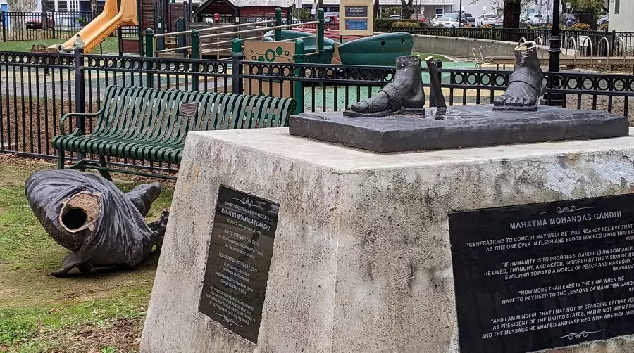 ഗാന്ധിയുടെ പ്രതിമ അജ്ഞാതർ തകർത്തു; പ്രതിഷേധവുമായി യു.എസിലെ ഇന്ത്യൻ വംശജർ