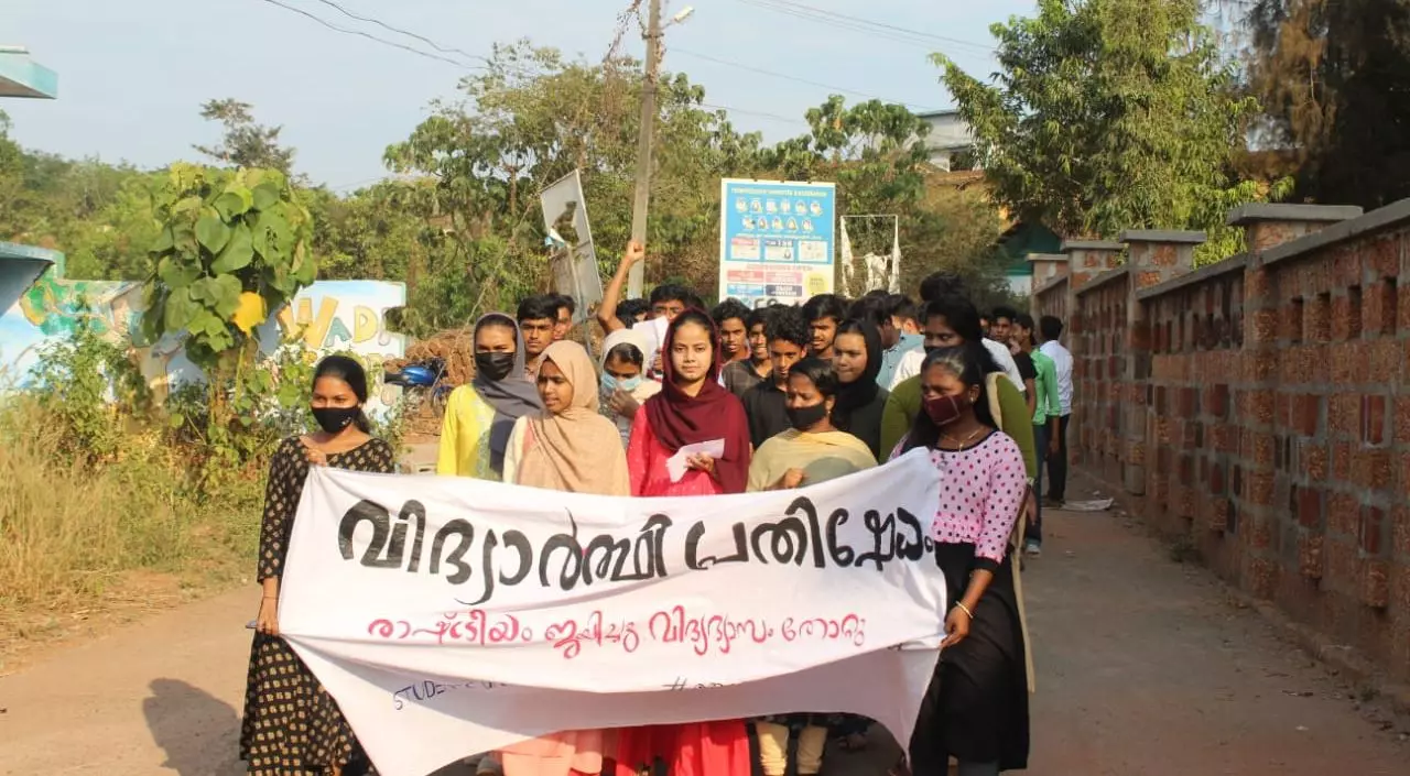 കോഴിക്കോട് കൊടിയത്തൂരിലാണ് വിവിധ സ്കൂളുകളിലെ വിദ്യാർഥികൾ ഒത്തുകൂടി പ്രതിഷേധിച്ചത്