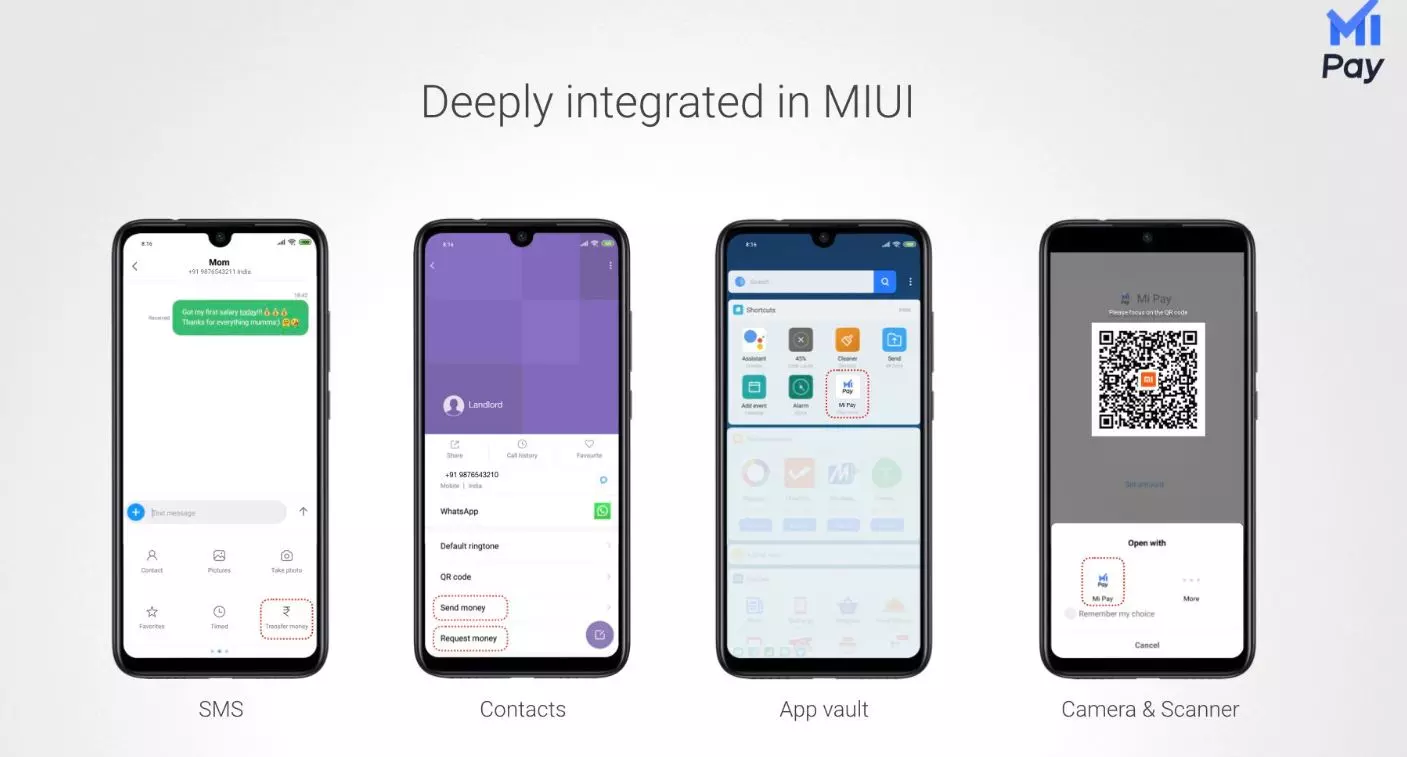 Access #MiPay easily with deep integration within #MIUI. Send money directly to bank accounts from the SMS, Contacts and Scanner apps.