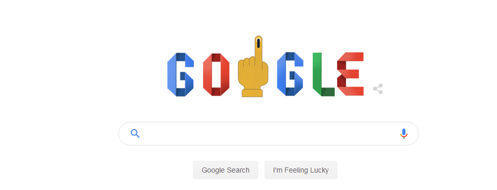 ഇന്ത്യയിൽ പൊതുതെരഞ്ഞെടുപ്പിന്റെ ആദ്യ ഘട്ടം നടക്കുന്നതിന്റെ പശ്ചാതലത്തിൽ പ്രത്യേക ഡൂഡിൽ ഒരുക്കി ഗൂഗിൾ. വോട്ട് ചെയ്യുന്നതിനെ കുറിക്കുന്ന മഷി പുരട്ടിയ ചൂണ്ട് വിരലോട് കൂടിയാണ് ഗൂഗിൾ ലോകത്തെ ഏറ്റവും വലിയ ജനാധിപത്യ രാജ്യത്തിന്റെ വിധിയെഴുത്തിനെ വരവേൽക്കുന്നത്.