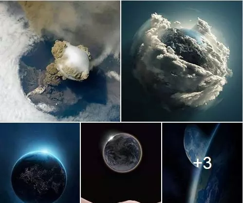 അന്താരാഷ്ട്ര ബഹിരാകാശ നിലയത്തിലെ സഞ്ചാരികള് എടുത്ത ചിത്രമാണിത്. റഷ്യയിലെ കുരില് ദ്വീപിലെ അഗ്നിപര്വ്വതസ്ഫോടനത്തിന്റെ ചിത്രമാണിത്.