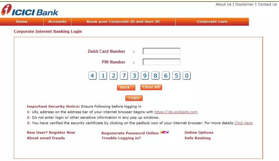 ഒ.ടി.പിക്കൊപ്പം ഡെബിറ്റ് കാര്ഡിന്റെ PIN നമ്പര് കൂടി അടിച്ചാണ് ലോഗിന് സാധ്യമാക്കുന്നത്. ഇതിനായി ആദ്യം ‘www.icicibank.com’ എന്ന വെബ് സൈറ്റില് കയറി ലോഗിന് ക്ലിക്ക് ചെയ്യണം. ശേഷം ബാങ്കുമായി രജിസ്റ്റര് ചെയ്തിട്ടുള്ള മൊബൈല് നമ്പര് ടൈപ്പ് ചെയ്ത് Get OTP ഓപ്ഷനില് ക്ലിക്കു ചെയ്യുക. മൊബൈലില് ലഭിക്കുന്ന OTPയും ഡെബിറ്റ് കാര്ഡ് പിന് നമ്പറും അടിച്ച ശേഷം പ്രൊസീഡ് ചെയ്താല് ഇന്റര്നെറ്റ് ബാങ്കിംങ് ലോഗിന് ആകും.
