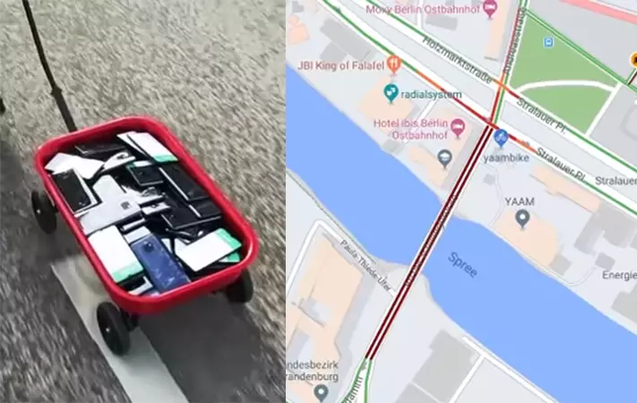 ട്രോളിയിൽ 99 ഫോണുകളുമായി യുവാവ്: ഗൂഗിൾ മാപ്പ്സിനെ പറ്റിച്ച് 'വ്യാജ ട്രാഫിക്ക് ജാം'