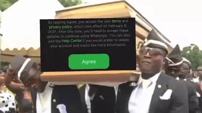 ട്വിറ്ററിൽ പങ്കുവെച്ച മീമുകൾ വഴിയാണ് ടെലഗ്രാം പരിഹസിച്ചത്. വാട്സ്ആപ്പിന്റെ പരിഷ്കരിച്ച സ്വകാര്യത നയ പതിച്ച ശവമഞ്ചവുമായി നിന്ന് നൃത്തം ചെയ്യുന്നവരുടെ ജിഫ് ആണ് ഞായറാഴ്ച അവർ ട്വിറ്ററിൽ പങ്കുവെച്ചത്.