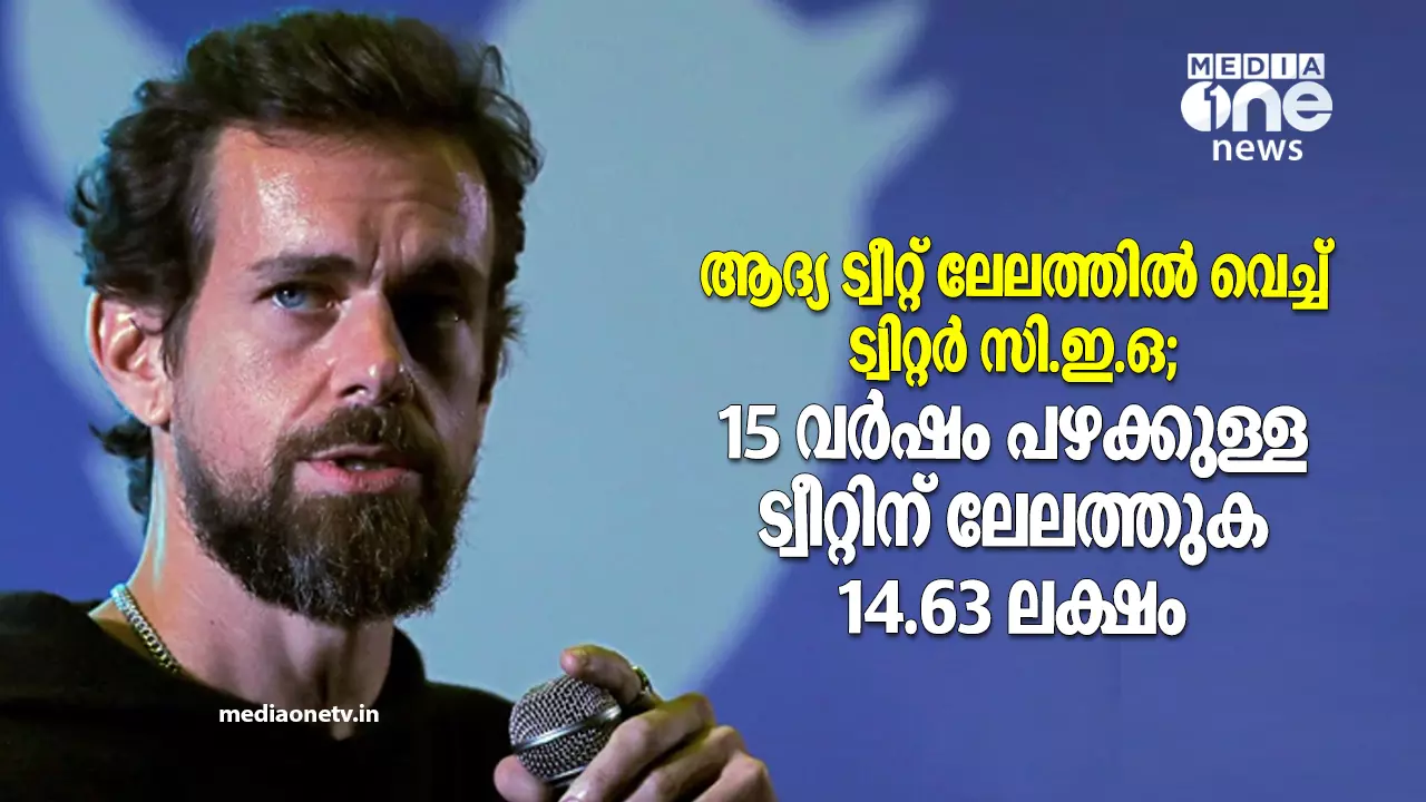 ആദ്യ ട്വീറ്റ് ലേലത്തില് വെച്ച് ട്വിറ്റര് സി.ഇ.ഒ; 15 വര്ഷം പഴക്കുള്ള ട്വീറ്റിന് ലേലത്തുക 14.63 ലക്ഷം