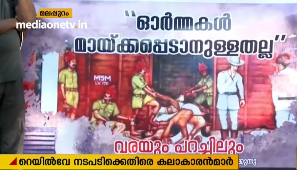 മലപ്പുറം തിരൂർ റെയിൽവേ സ്റ്റേഷനിലെ വാഗൺ ട്രാജഡി ചിത്രം മായ്ച് കളഞ്ഞ റെയിൽവേ നടപടിക്കെതിരെ കലാകാരൻമാരും രംഗത്ത്. വരയും പാട്ടും കവിതകളുമായി ദിവസേനെ ഇവിടെ പ്രതിഷേധ പരിപാടികൾ നടക്കുന്നുണ്ട്.