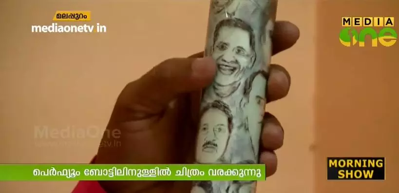 പെർഫ്യൂം ബോട്ടിലുകൾക്കകത്തും ട്യൂബ് ലൈറ്റുകൾക്കുള്ളിലും സൂക്ഷ്മമായി ചിത്രം വരക്കുന്ന ഒരു അതുല്യ കലാകാരനെയാണ് ഇന്ന് കയ്യൊപ്പിൽ പരിചയപ്പെടുത്തുന്നത്.