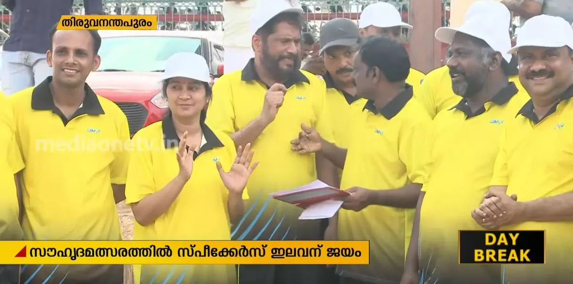 ലോകകപ്പ് ആവേശത്തില് നിയമസഭ സമാജികരും. തിരുവനന്തപുരത്ത് നടന്ന സൌഹൃദ മത്സരത്തില് മീഡിയ ഇലവനെതിരെ സ്പീക്കേഴ്സ് ഇലവന് തകര്പ്പന് ജയം. സ്പീക്കര് പി ശ്രീരാമകൃഷ്ണന് സമ്മാനങ്ങള് വിതരണം ചെയ്തു.
