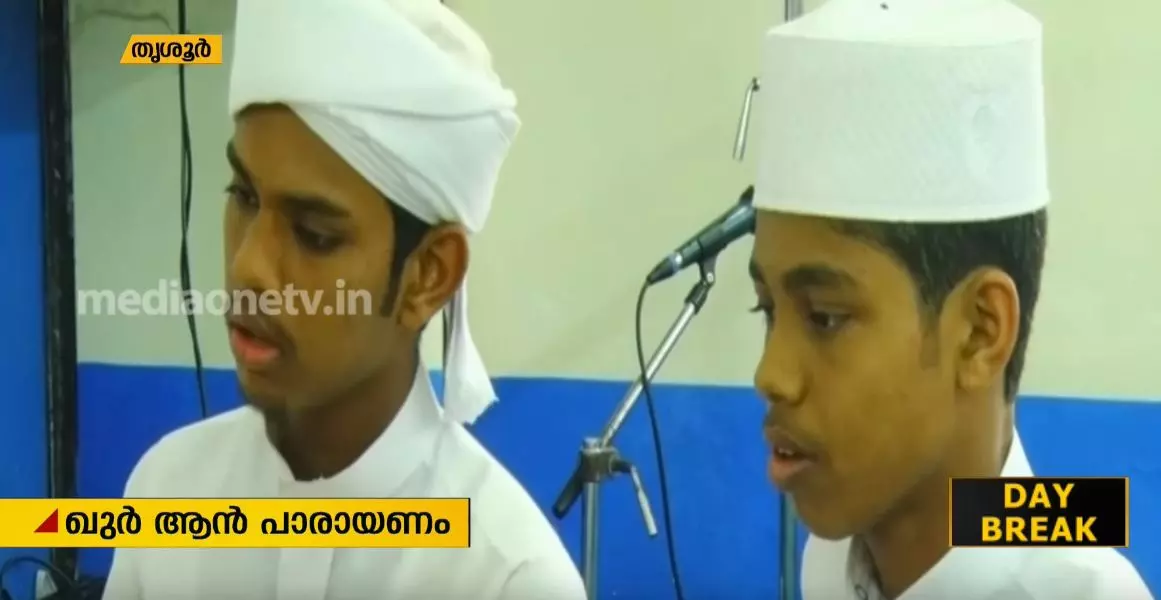 ഖുര് ആന് 12 മണിക്കൂര് കൊണ്ട് പാരായണം ചെയ്ത് ശ്രദ്ധേയരായിരിക്കുകയാണ് തൃശൂരിലെ രണ്ട് വിദ്യാര്ത്ഥികള്. മനപാഠമാക്കിയാണ് ഇവരുടെ ഖുര് ആന് പാരായണം.