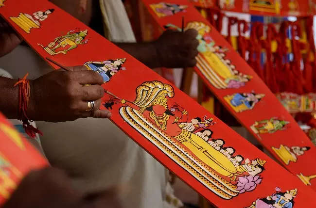 നൂറ്റാണ്ടുകള് പഴക്കമുള്ള ആചാരത്തിന്റെ ഭാഗമായാണ് കരമനയിലെ ശില്പികളുടെ കുടുംബം ആചാരവില്ലുകൾ തയ്യാറാക്കുന്നത്