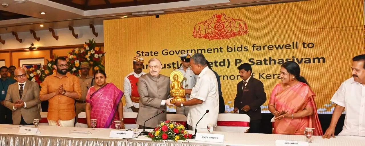 തിരുവനന്തപുരം മസ്കറ്റ് ഹോട്ടലിൽ നടന്ന യാത്രയയപ്പ് ചടങ്ങിൽ ഗവർണർ പി. സദാശിവം ഭാര്യ സരസ്വതിക്കൊപ്പമാണ് പങ്കെടുത്തത്