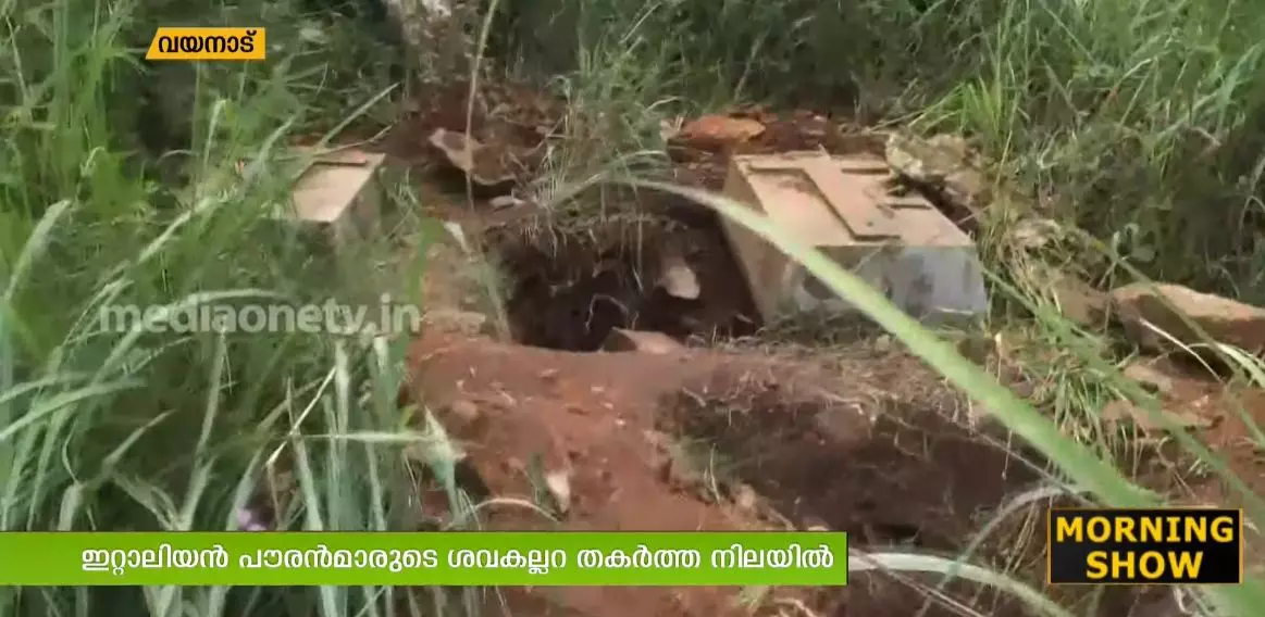 വയനാട്ടിൽ ഇറ്റാലിയന് പൗരന്മാരുടെ ശവകല്ലറ തകര്ത്ത നിലയില്. വയനാട് ചുണ്ടയിലെ റിപ്പണ് എസ്റ്റേറ്റില് നൂറ്റാണ്ടുകള് പഴക്കമുള്ള കല്ലറയാണ് തകർക്കപ്പെട്ടത്.