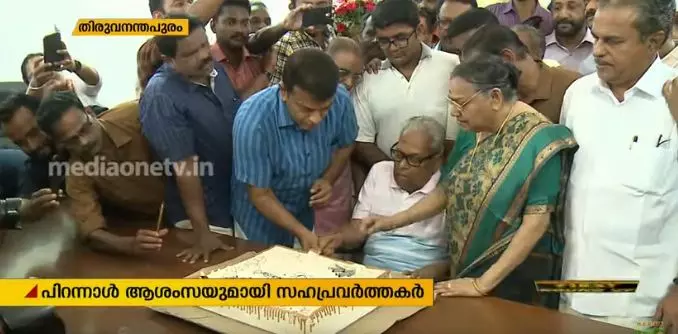 വിഎസിന് ഇന്ന് തൊണ്ണൂറ്റി ആറാം പിറന്നാള്. ഔദ്യോഗിക വസതിയില് ബന്ധുക്കള്ക്കും സഹപ്രവര്ത്തകര്ക്കുമൊപ്പം കേക്ക് മുറിച്ചായിരുന്നു ആഘോഷം.