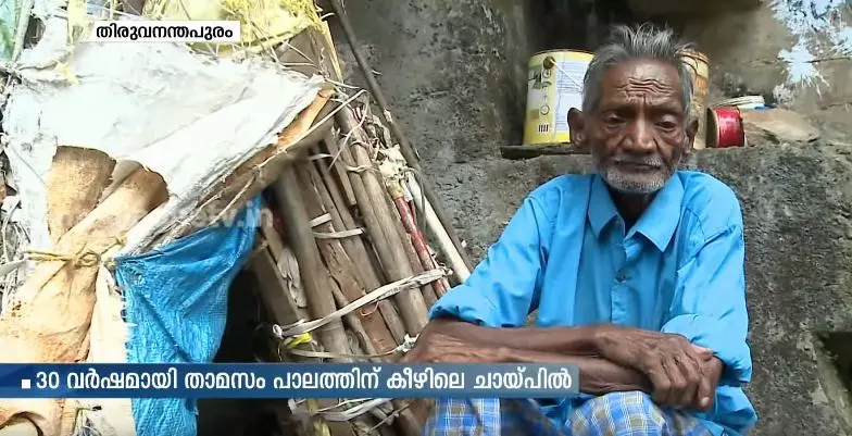 30 വര്ഷമായി പാലത്തിന്റെ താഴെ ചെറിയ ചായ്പ് കെട്ടി താമസിക്കുകയാണ് നെടുമങ്ങാട് പഴകുറ്റിയിലെ ചെല്ലപ്പന് ചേട്ടന്. തോട് പുറമ്പോക്കില് ഉണ്ടാക്കിയെടുത്ത വാഴത്തോട്ടമാണ് ചെല്ലപ്പന് ചേട്ടന്റെ സമ്പാദ്യം