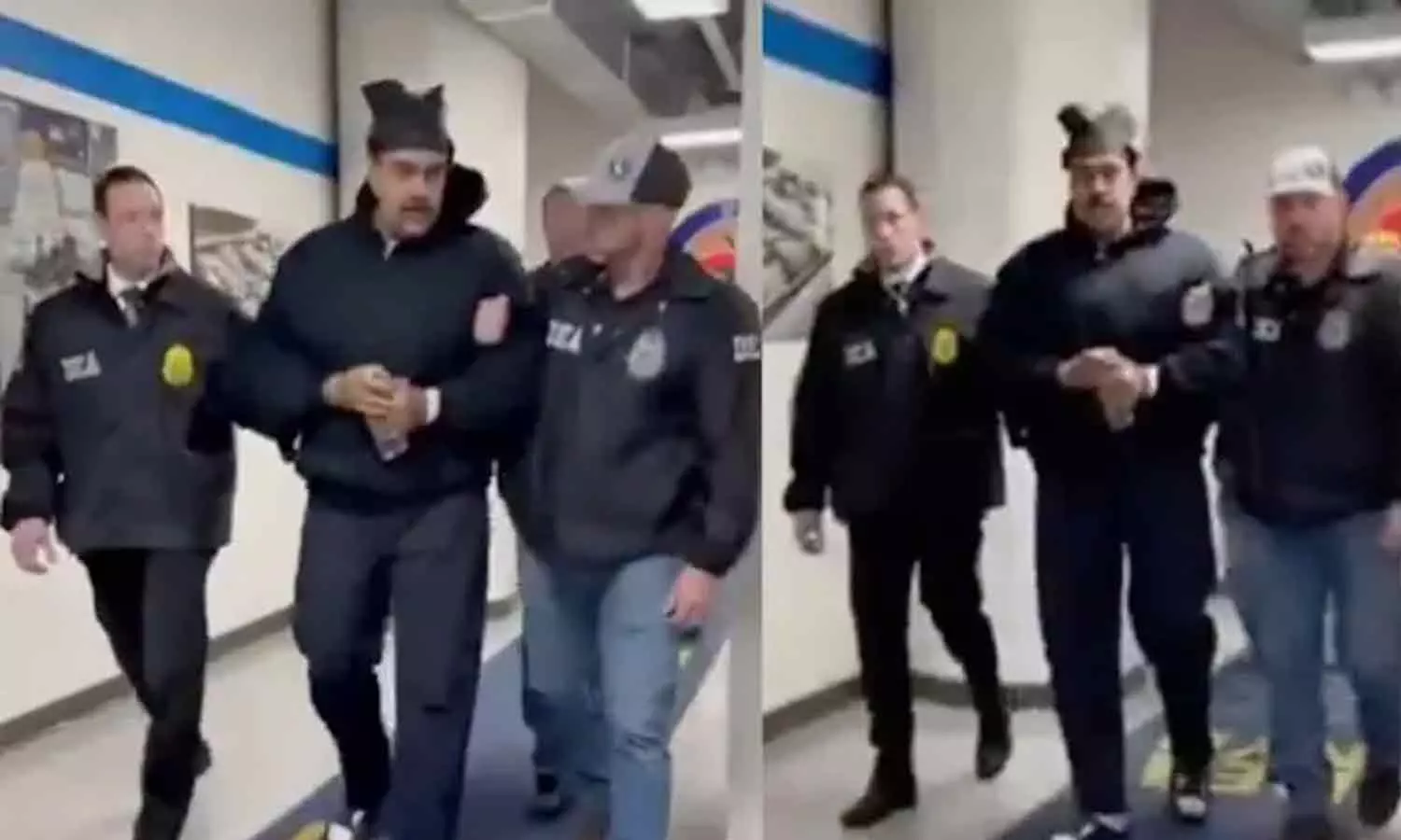കൈവിലങ്ങണിയിച്ച്, കറുത്ത ഹൂഡി ധരിച്ച നിലയിലായിലാണ് ദൃശ്യങ്ങളിൽ മദൂറോ ഉള്ളത്. തന്നെ അകമ്പടി സേവിച്ച ഉദ്യോഗസ്ഥരോട് 'ഗുഡ് നൈറ്റ്', 'ഹാപ്പി ന്യൂ ഇയർ' എന്ന് മദൂറോ അഭിവാദ്യം ചെയ്യുന്നതും വീഡിയോയിൽ കേൾക്കാം. ന്യൂയോർക്കിലെ മെട്രോപൊളിറ്റൻ ഡിറ്റൻഷൻ സെന്ററിലേക്കാണ് ഇദ്ദേഹത്തെ പിന്നീട് മാറ്റിയത്. മയക്കുമരുന്ന് കടത്ത്, അമേരിക്കയിലേക്ക് ടൺ കണക്കിന് കൊക്കെയ്ൻ എത്തിക്കൽ, അനധികൃത ആയുധങ്ങൾ കൈവശം വെക്കൽ തുടങ്ങിയ ഗുരുതരമായ കുറ്റങ്ങളാണ് മദൂറോയ്ക്കും ഭാര്യയ്ക്കുമെതിരെ അമേരിക്ക ചുമത്തിയിരിക്കുന്നത്.