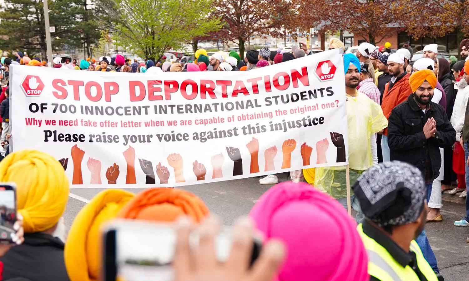 ഒട്ടാവ: നാടുകടത്തൽ ഭീഷണിക്കെതിരെ കാനഡയിൽ ഇന്ത്യൻ വിദ്യാർഥികളുടെ പ്രതിഷേധം തുടരുന്നു. ഇന്ത്യയിൽ നിന്നുള്ള എഴുന്നോറോളം വിദ്യാർഥികളാണ് ദിവസങ്ങളായി കാനഡയിലെ തെരുവുകളിൽ പ്രതിഷേധിക്കുന്നത്. വിദ്യാർഥികളിൽ ഭൂരിഭാഗവും പഞ്ചാബിൽ നിന്നുള്ളവരാണ്.