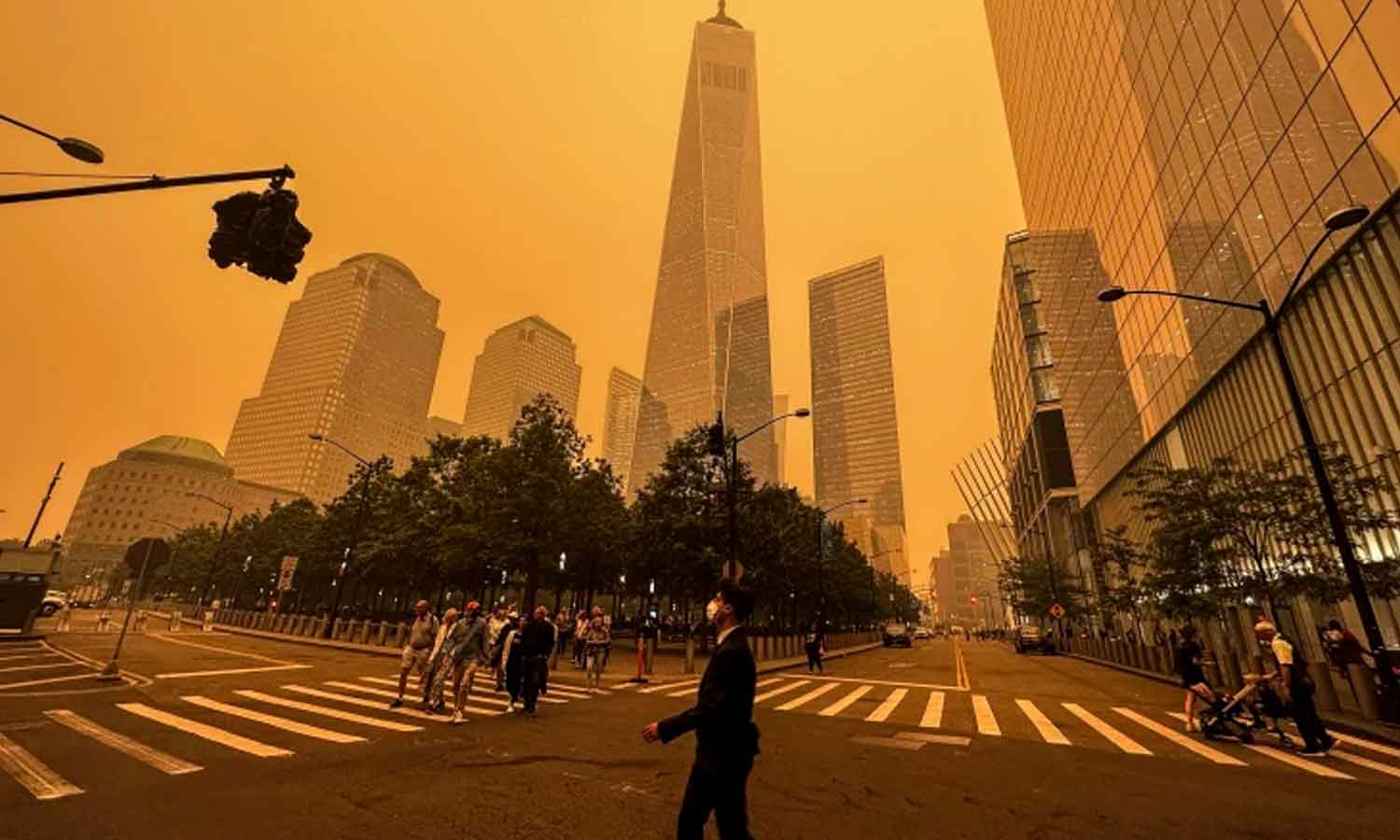 സ്കൂളുകൾക്ക് അവധി, പുറത്തിറങ്ങാൻ മാസ്ക് നിർബന്ധം; കനത്ത പുകയിൽ ശ്വാസംമുട്ടി ന്യൂയോർക്ക്