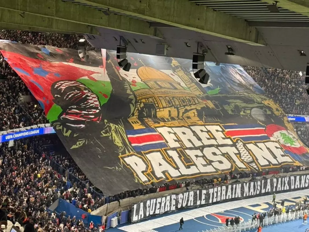 ചാമ്പ്യന്സ് ലീഗ് മത്സരത്തിനിടെ 'ഫ്രീ ഫലസ്തീന്' ബാനറുമായി പിഎസ്ജി ആരാധകര്