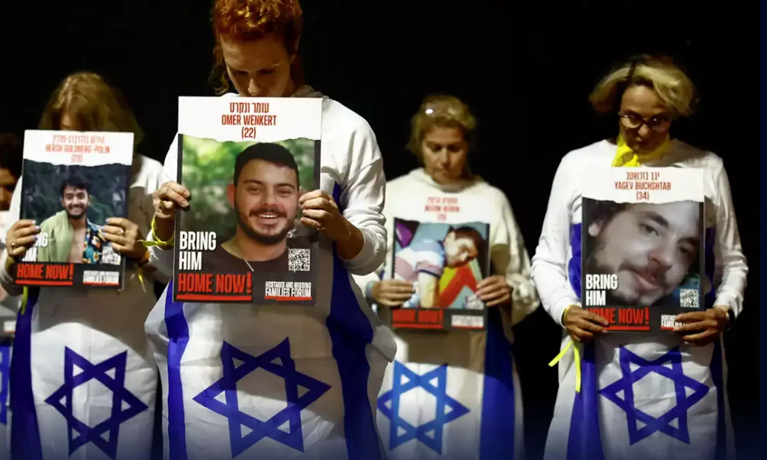 പ്രതിരോധമന്ത്രിയുടെ ഓഫീസിന് മുന്നിലാണ് ബന്ദികളുടെ ബന്ധുക്കൾ പ്രതിഷേധിക്കുന്നത്