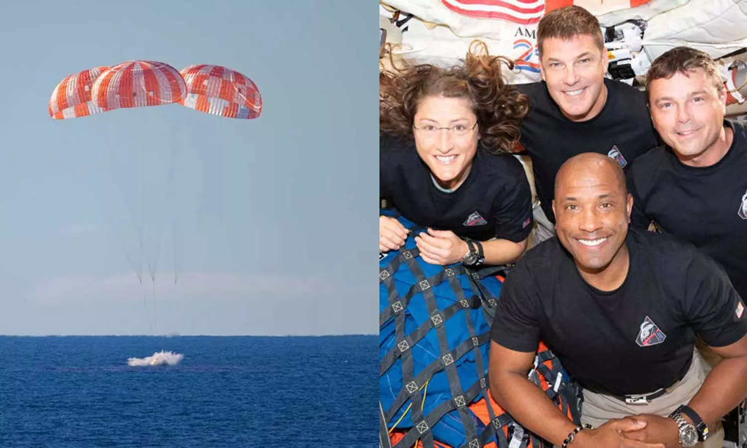 ഇന്ത്യൻ സമയം പുലർച്ചെ 5.37നാണ് യുഎസിലെ കാലിഫോർണിയക്ക് സമീപം പസിഫിക് സമുദ്രത്തിൽ പേടകം സ്പ്ലാഷ് ഡൗൺ ചെയ്തത്. അപ്പോളോ ദൗത്യങ്ങൾക്ക് ശേഷം മനുഷ്യൻ ചന്ദ്രനിലേക്ക് നടത്തിയ ഏറ്റവും വലിയ ദൗത്യത്തിനാണ് ശുഭസമാപ്തിയായിരിക്കുന്നത്. മനുഷ്യൻ ഇതുവരെ സഞ്ചരിച്ചിട്ടുള്ളതിൽ വെച്ച് ഏറ്റവും കൂടുതൽ ദൂരമെന്ന റെക്കോർഡ് കുറിച്ചാണ് ഈ സംഘം മടങ്ങിയെത്തിയത്. കമാൻഡർ റീഡ് വൈസ്മാൻ, വിക്ടർ ഗ്ലോവർ, ക്രിസ്റ്റീന കോച്ച്, ജെറമി ഹാൻസെൻ എന്നിവരാണ് ഈ ചരിത്രയാത്രയിലെ നായകർ.
