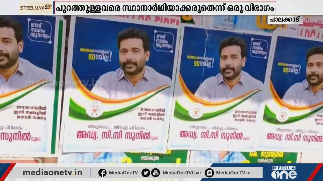 പാലക്കാട് നെന്മാറ മണ്ഡലത്തിൽ കോൺഗ്രസിൽ പൊട്ടിത്തെറി. നെന്മാറ മണ്ഡലത്തിന് പുറത്തുള്ളവരെ സ്ഥാനാർഥിയാക്കരുതെന്നാണ് ഒരു വിഭാഗത്തിന്റെ ആവശ്യം. അഡ്വക്കറ്റ് സി.സി സുനിലിനായി മണ്ഡലത്തിലുടനീളം പോസ്റ്ററുകൾ ഉയർന്ന് കഴിഞ്ഞു.